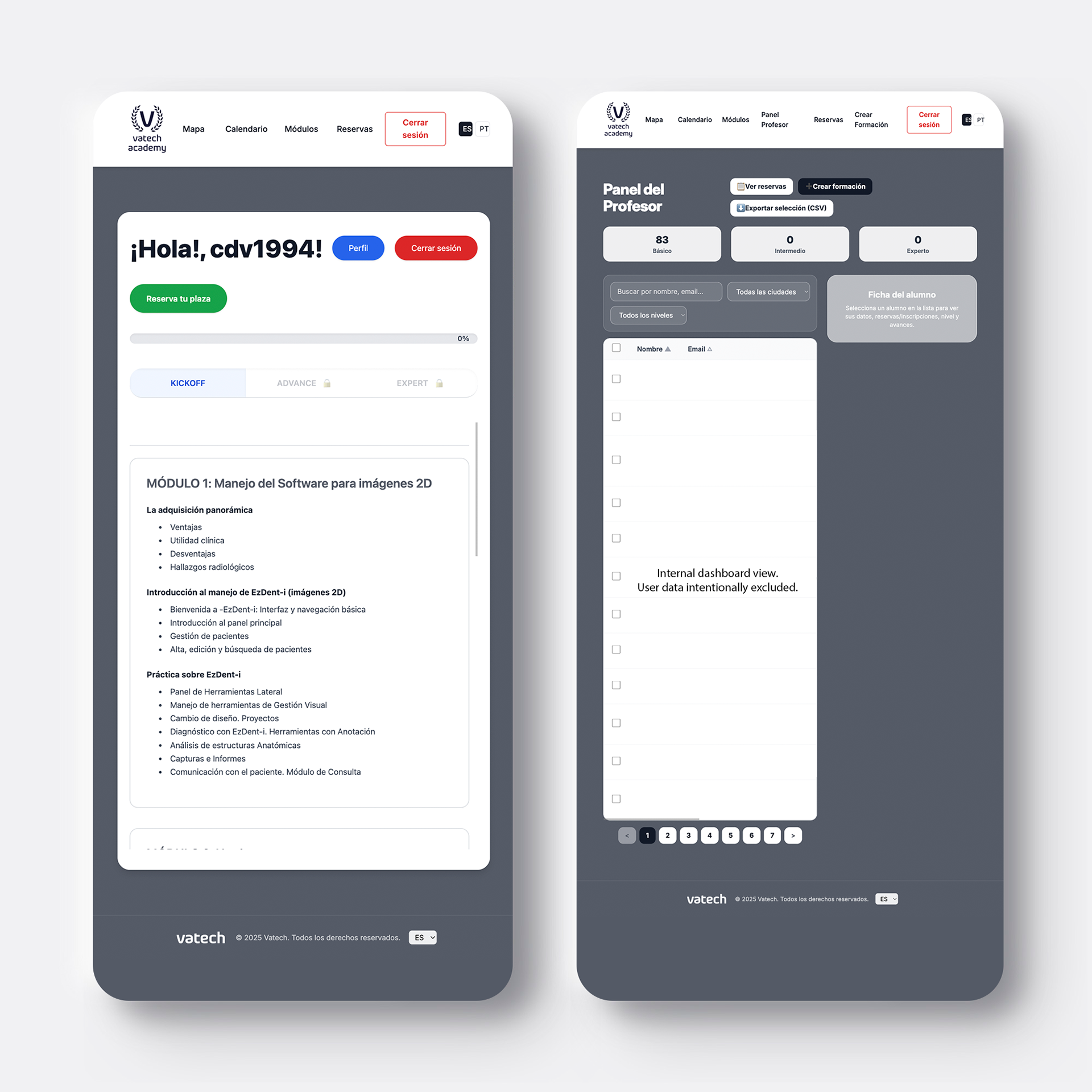 The final result is a robust and scalable digital learning platform that supports Vatech’s educational strategy while maintaining high usability and performance standards.